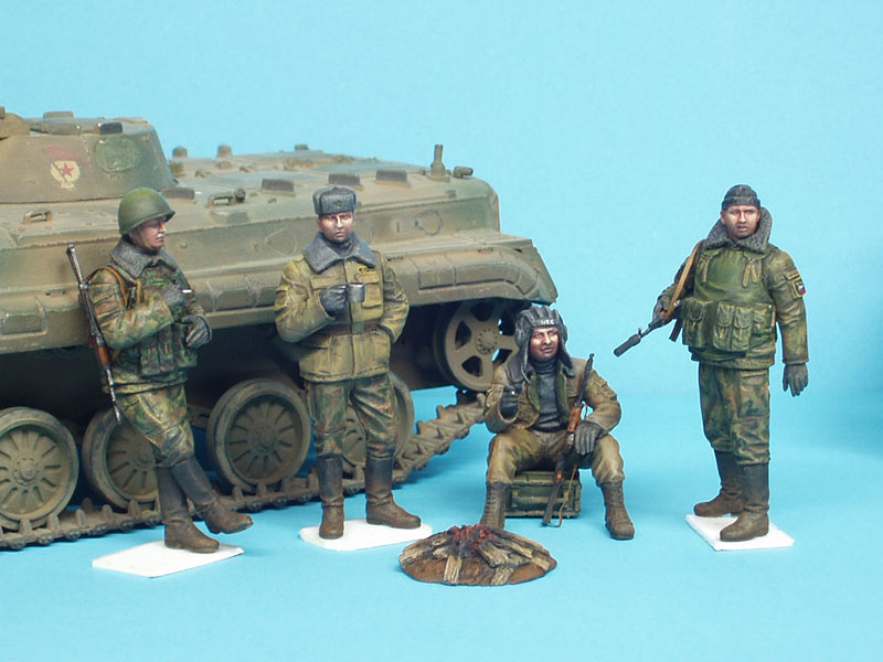 Фигурки другого скульптора я только расписывал. Масштаб 1/35 (54mm).Распмсывал в своей излюбленой манере лёгкого Б/У, выцвевшая форма,грязь,пыль,усталые не бритые лица-на мой взгляд это только оживляет данные персонажи.