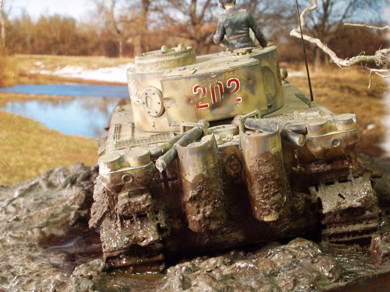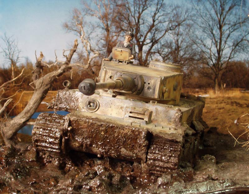 Представляю Вашему вниманию Диораму " Русские дороги" . Сюжет :- Немецкий тяжёлый танк " Тигр" передвигается по Русскому бездорожью.