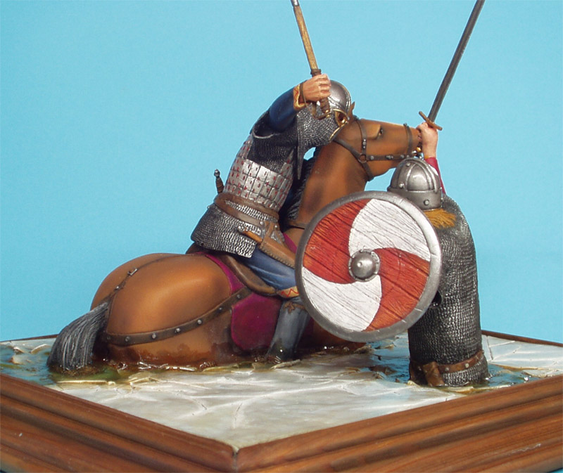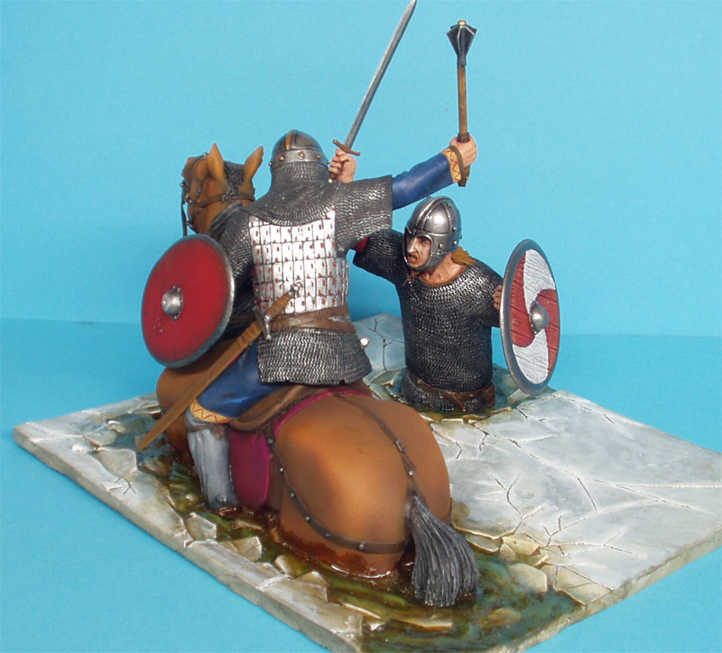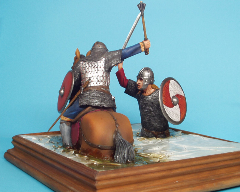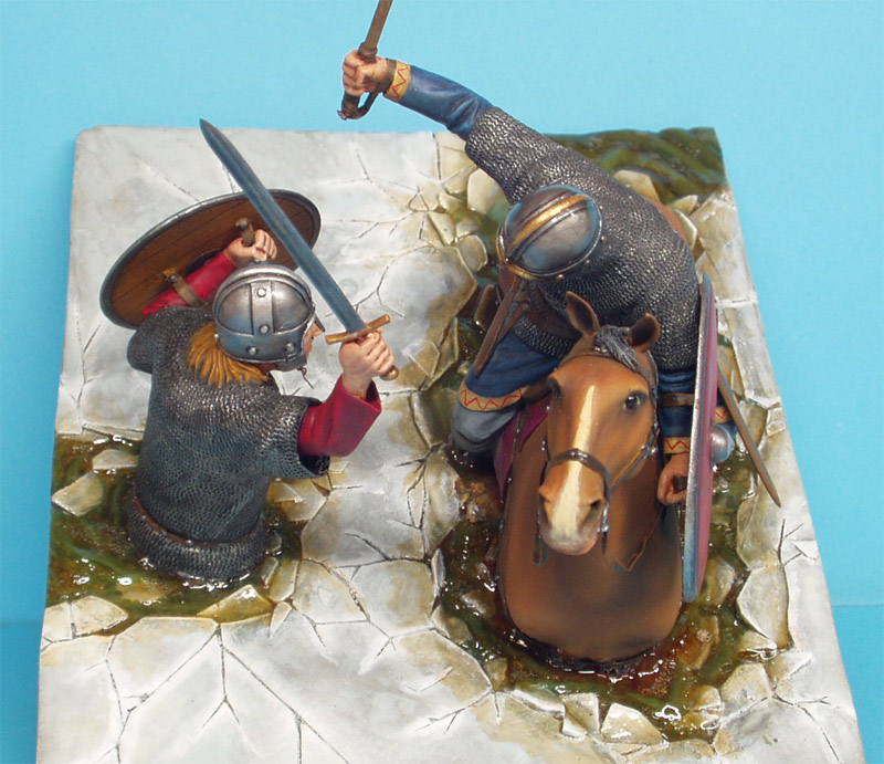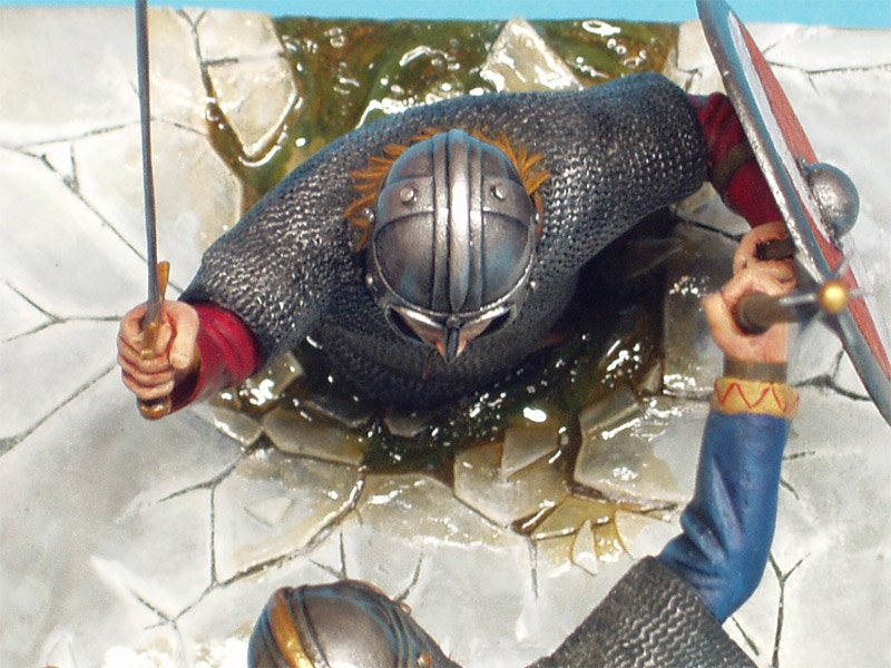 Сюжет :- Викинги жили постоянными набегами и грабежами. Спрыгнув с ладьи в ледяную воду викинг спешит выбраться на сушу, однако ему на встречу с берега ,загнав коня в воду,ломая лёд спешит норман. Имея явные преимущества всадника перед пешим и нахождение в ледяной воде результат поединка предрешен. Но викинга просто так не возьмёшь.
