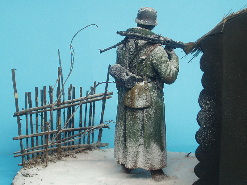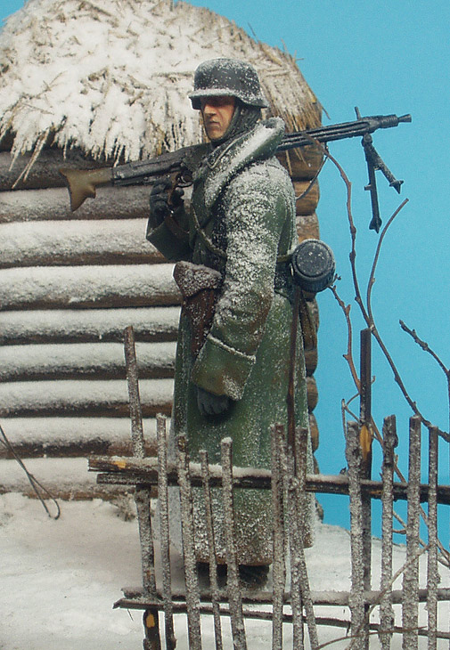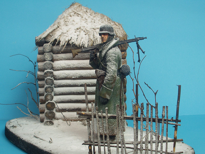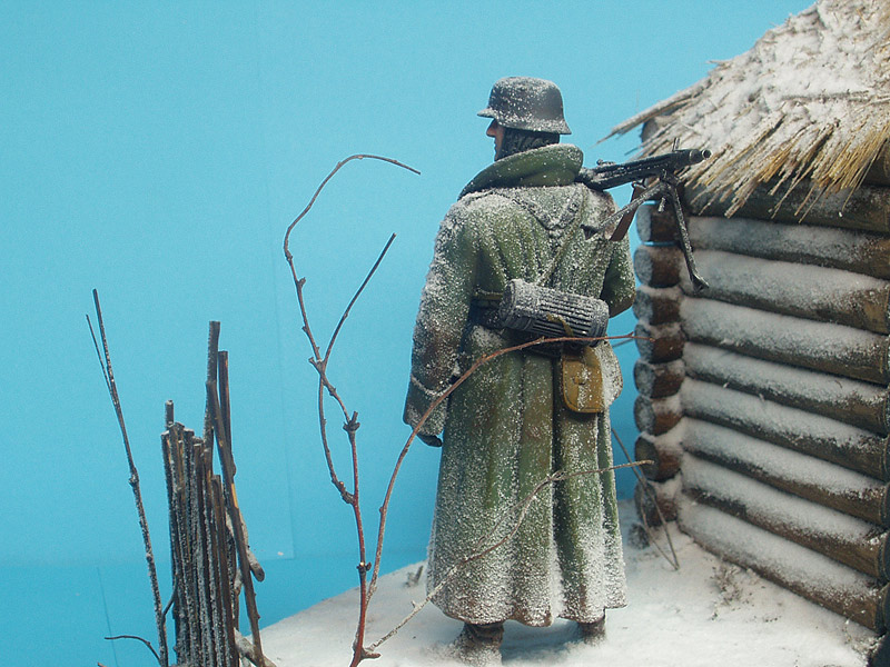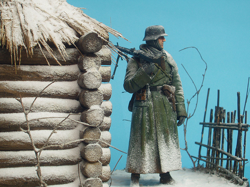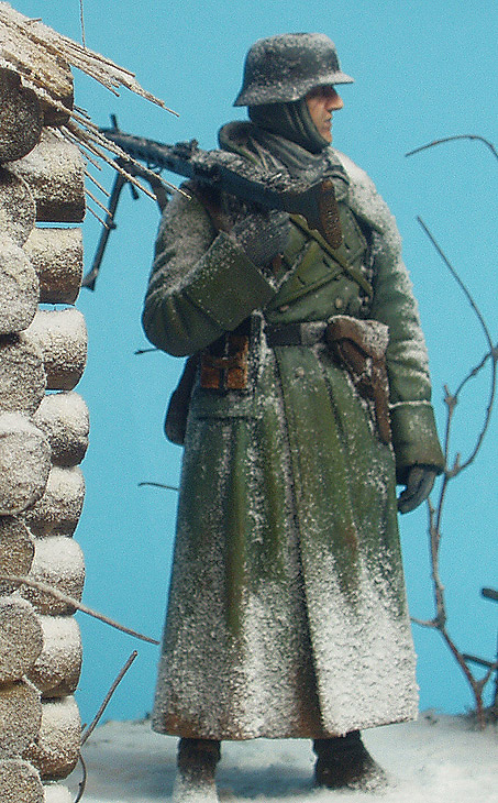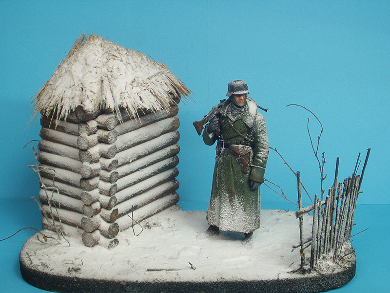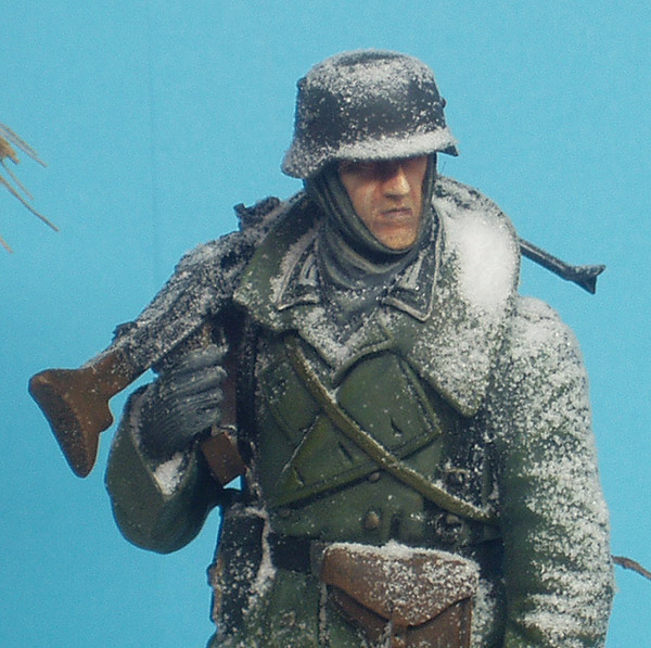 Фигурка фирмы "Тимия" ,масштаб 1:16 ( 120mm). Решил показать трудности зимы- метель,холод - снег повсюду, в карманах и за шиворотом.